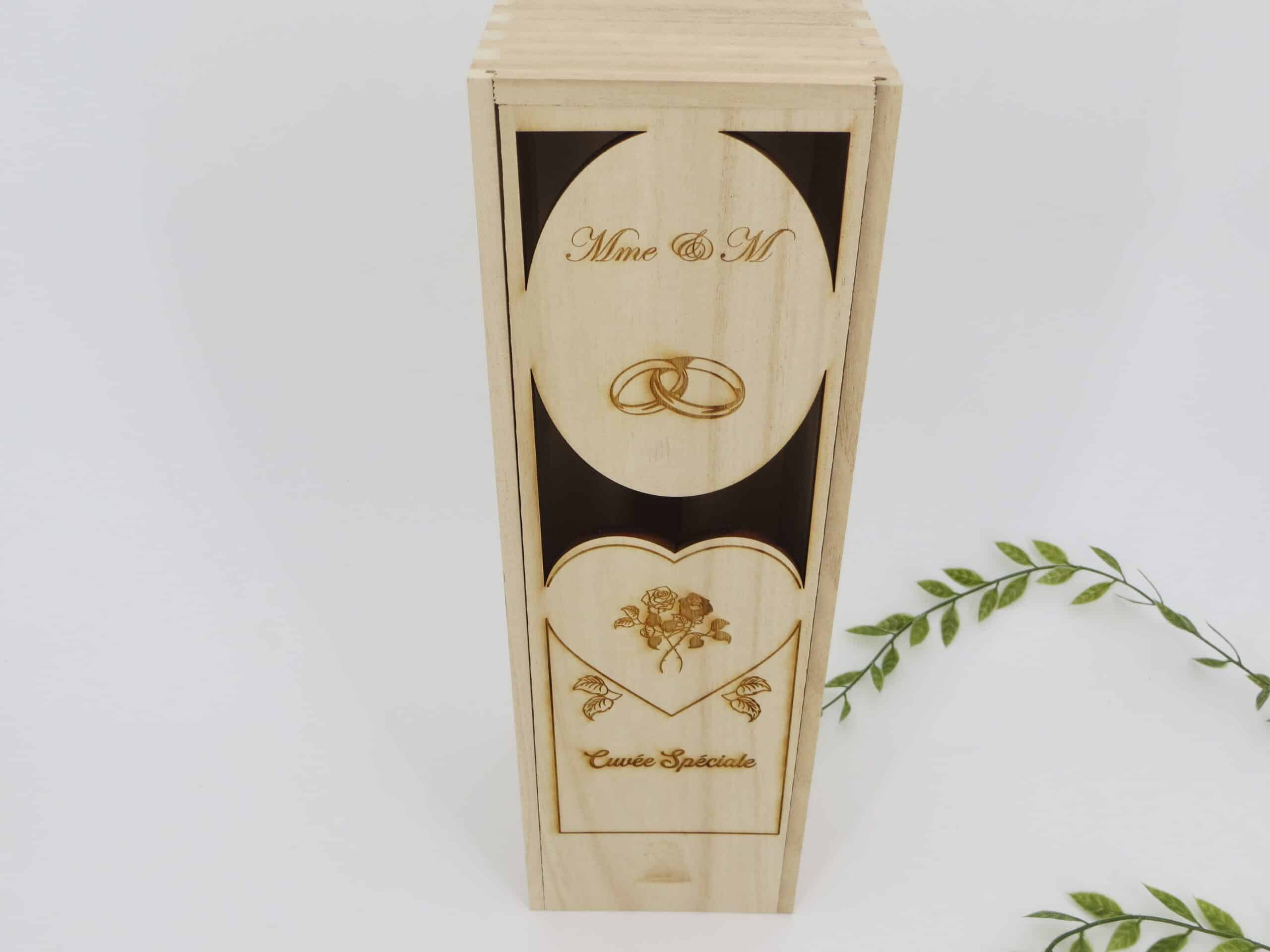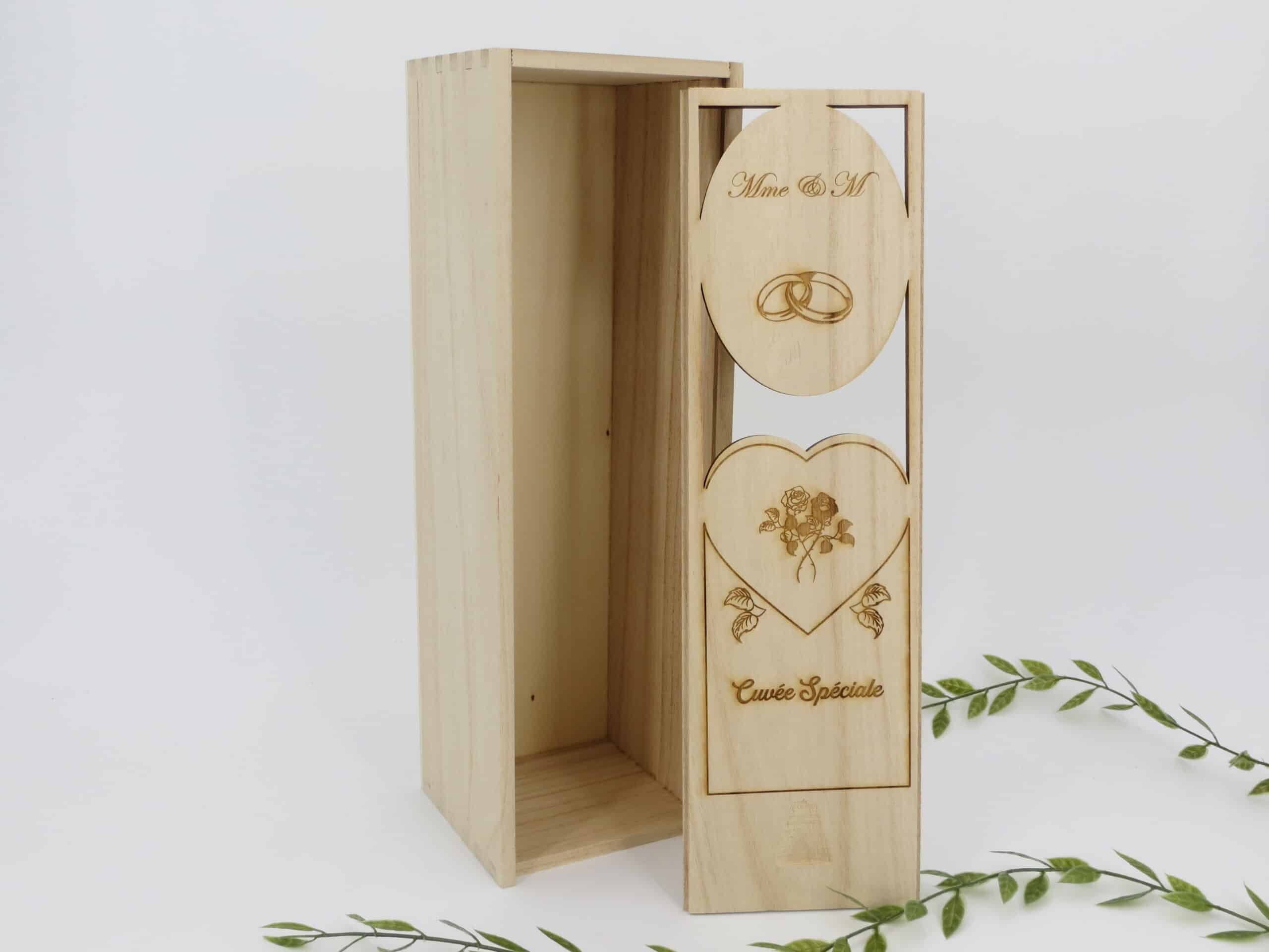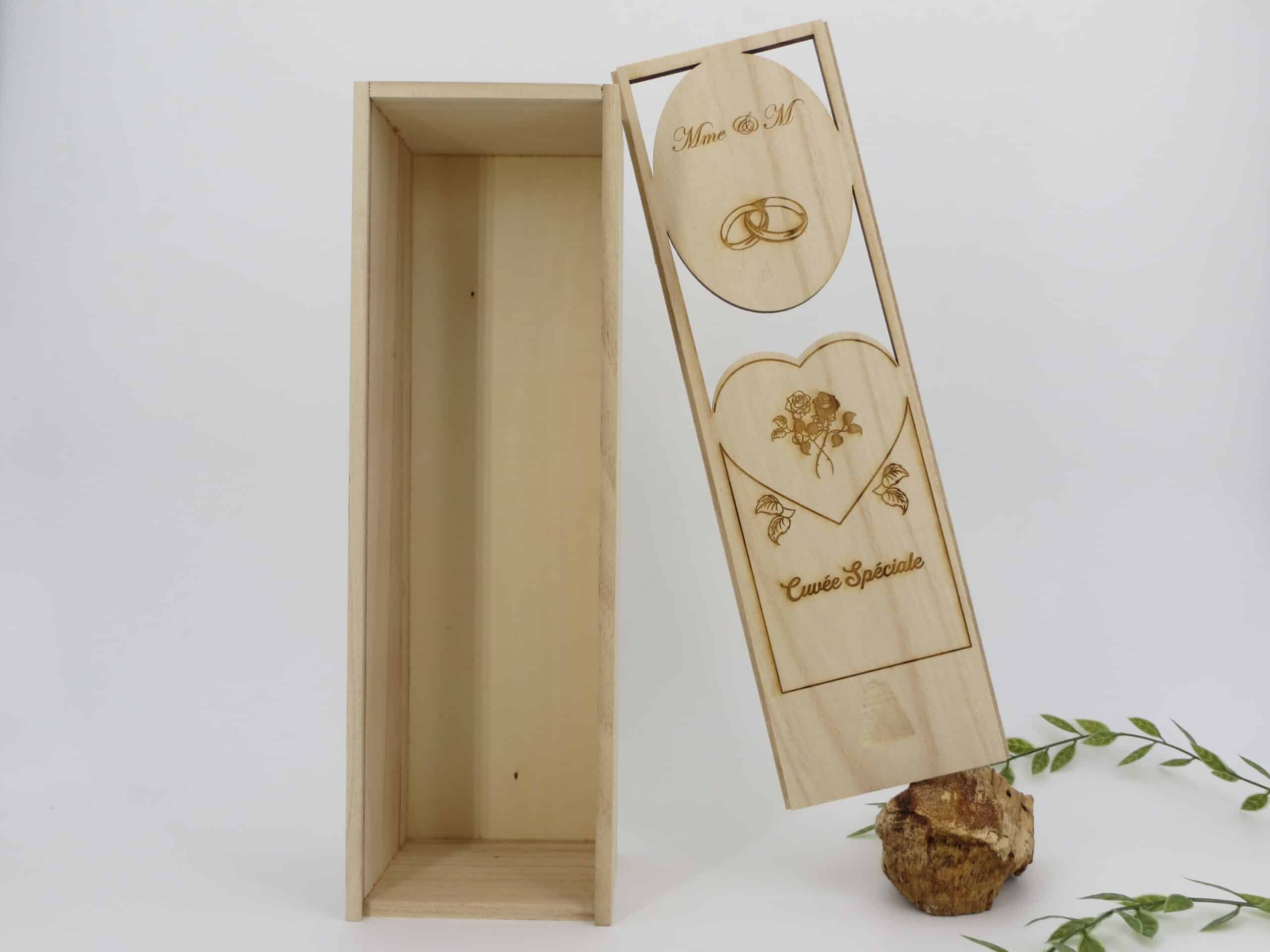 À la fois solide et décorative, cette boîte transforme une bouteille en un présent unique, idéal pour un mariage, un anniversaire ou toute occasion spéciale. Plus qu’un simple emballage, elle devient un souvenir à conserver et à réutiliser avec émotion.