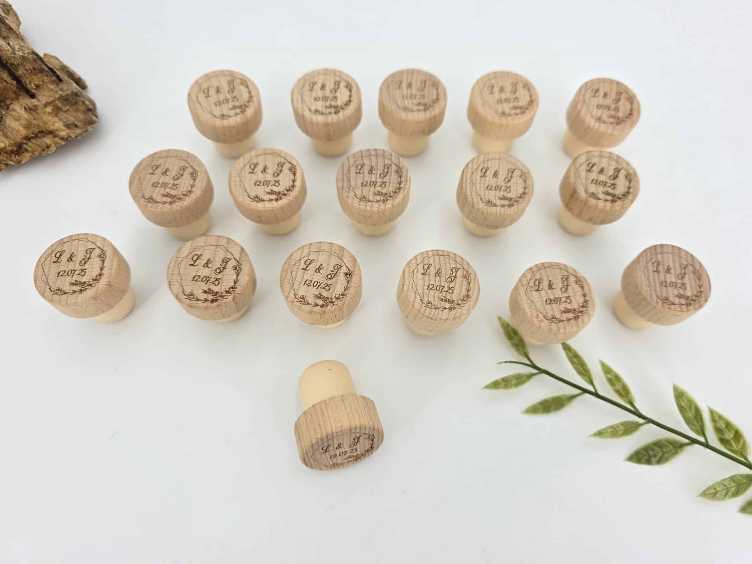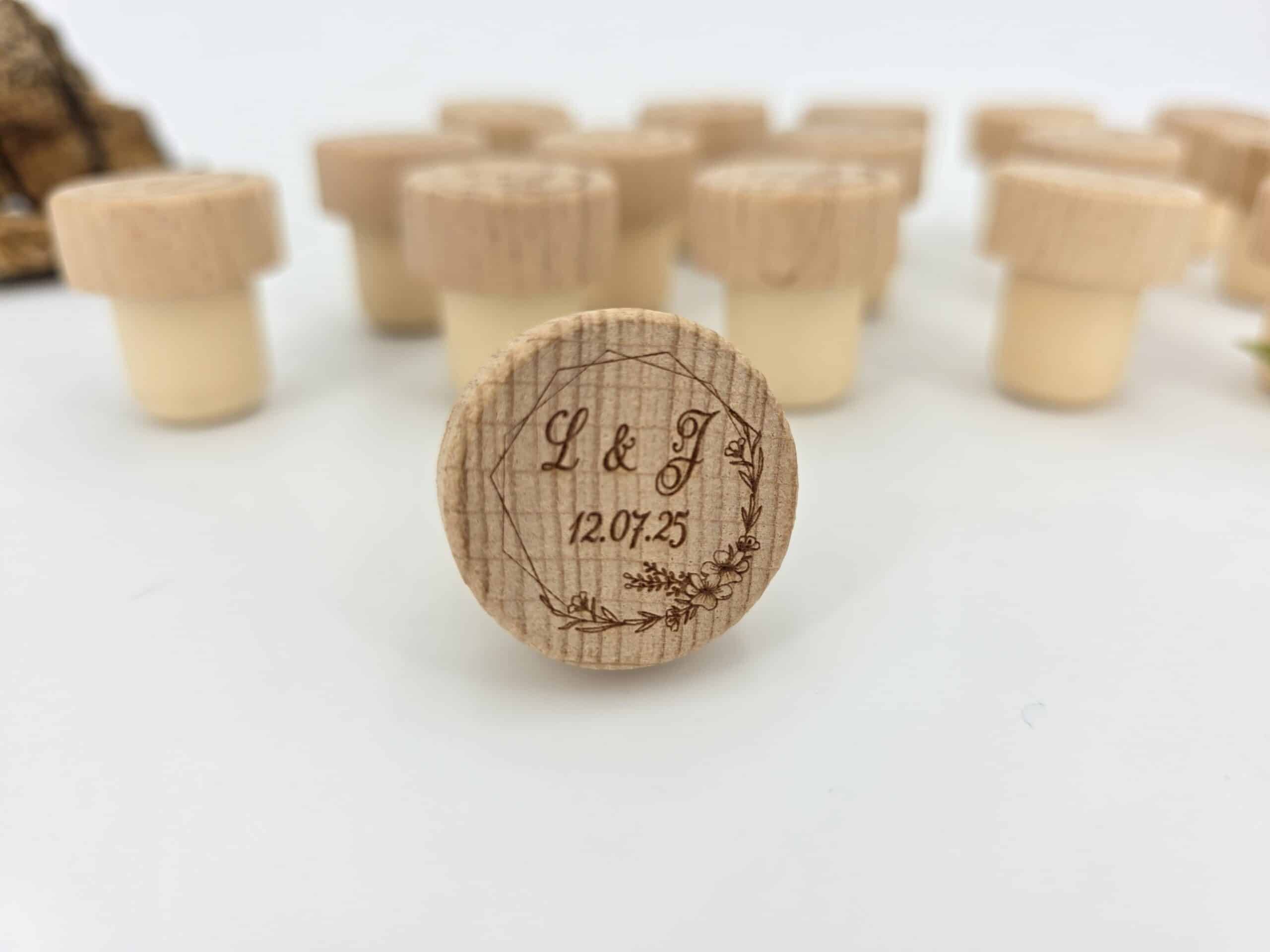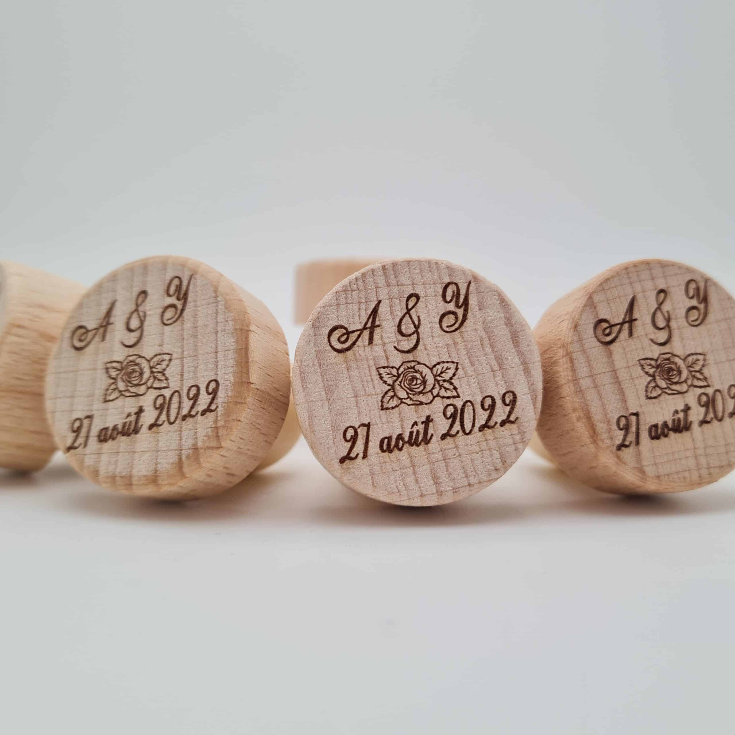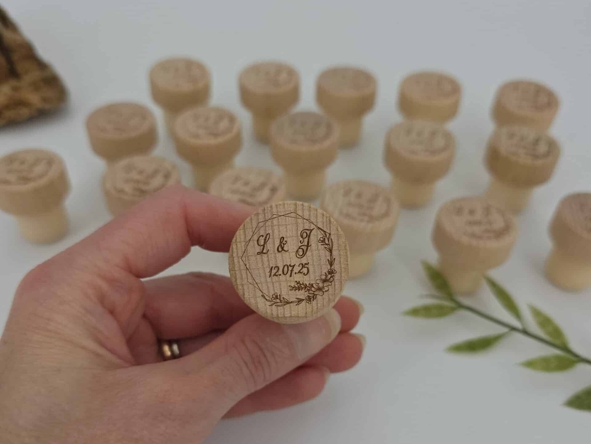 Gravés avec soin, ces bouchons sont bien plus qu’un simple accessoire : de petits trésors à la fois pratiques et symboliques, qui rappelleront à vos proches la chaleur et l’émotion de votre journée.