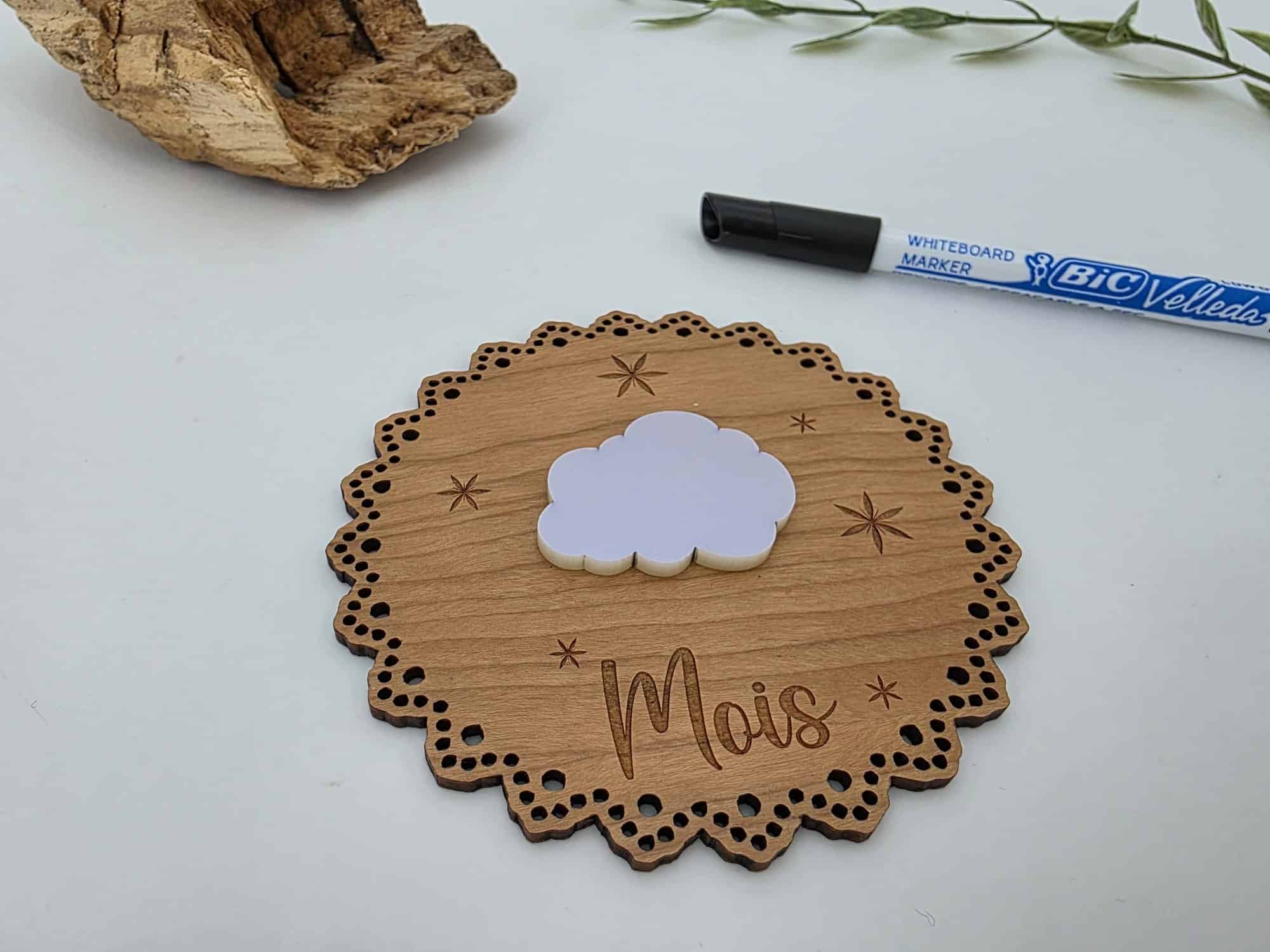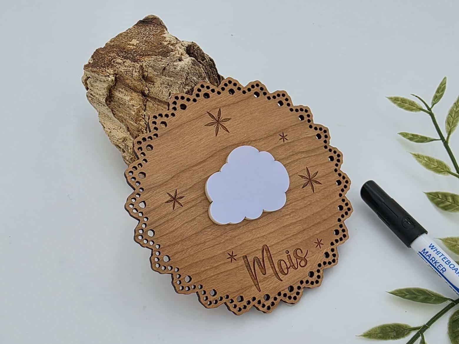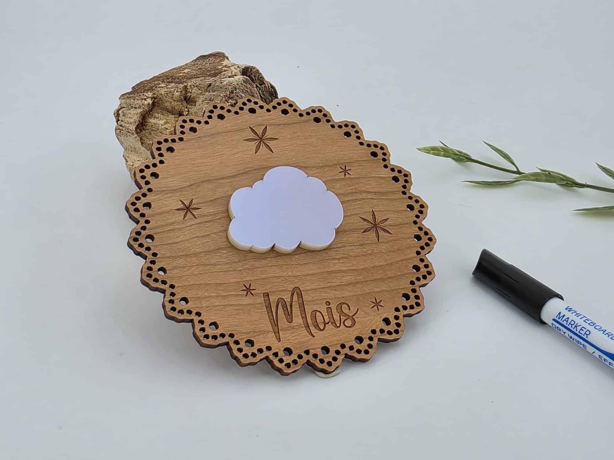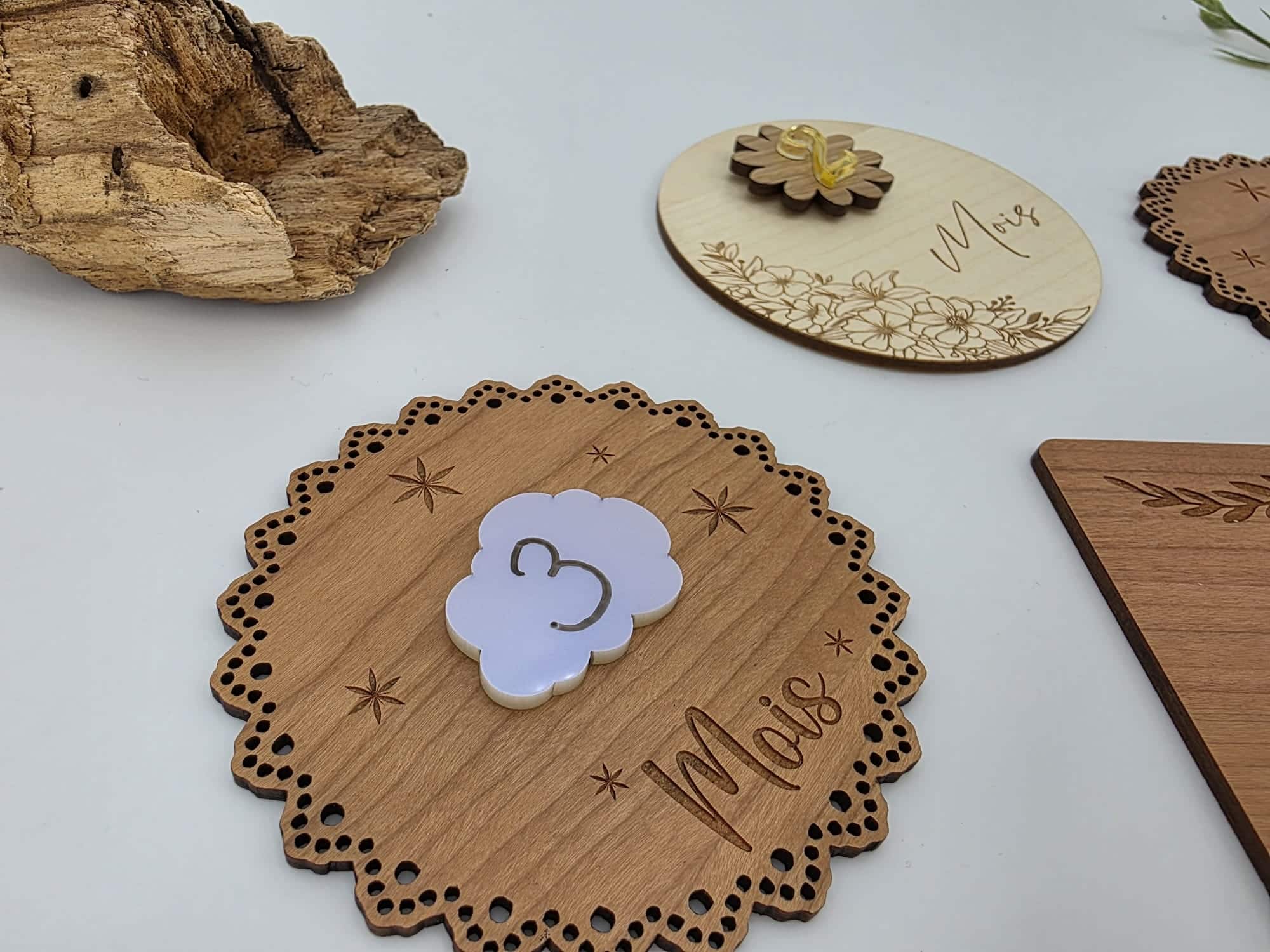 Les cartes étapes en bois sont un moyen unique et naturel de suivre la croissance de bébé mois après mois. Ces cartes peuvent être gravées avec des messages comme « Mon premier sourire » ou « Mon premier mot », créant ainsi des souvenirs magnifiques et personnalisés à chaque étape importante de la vie de bébé.