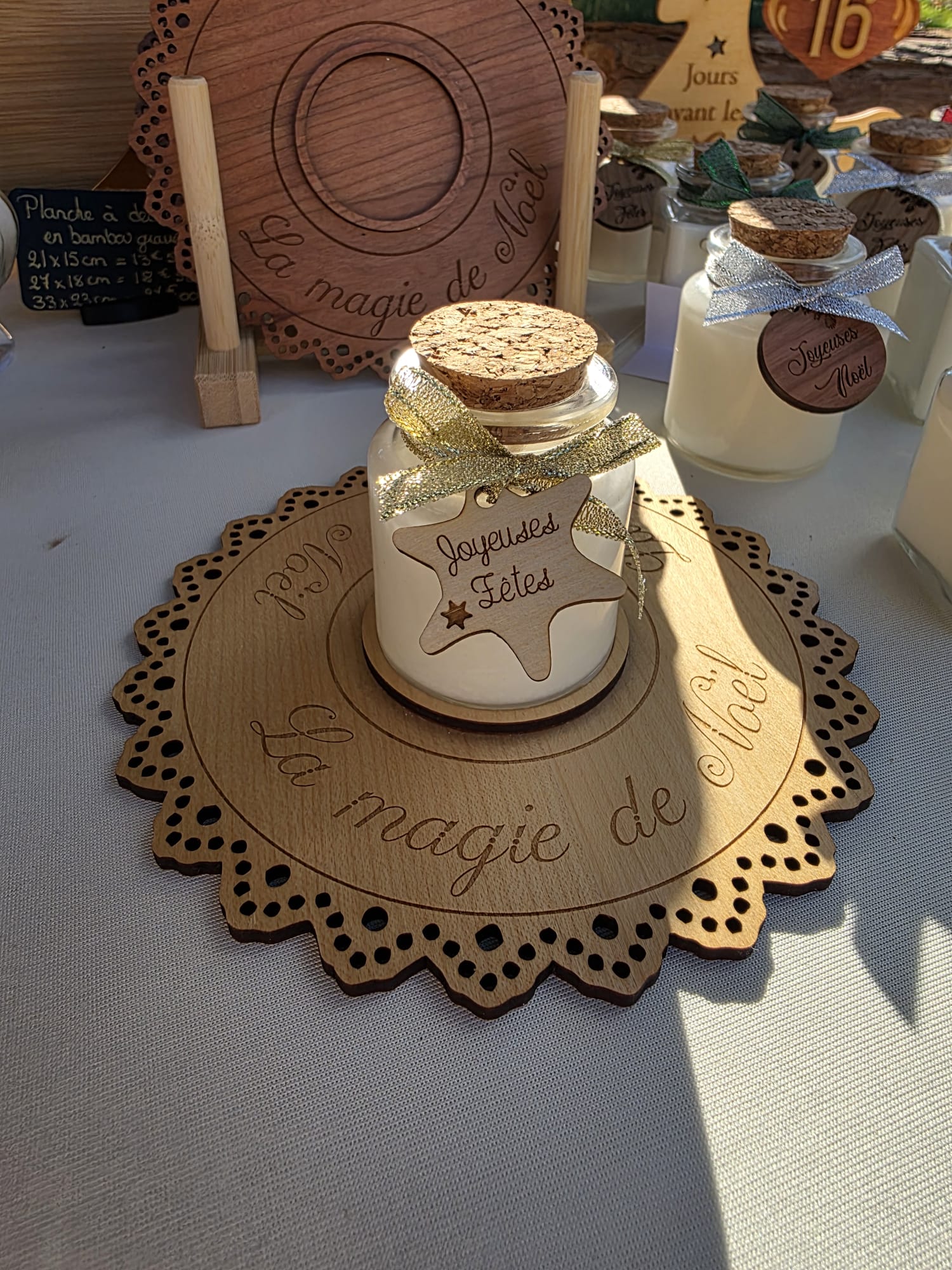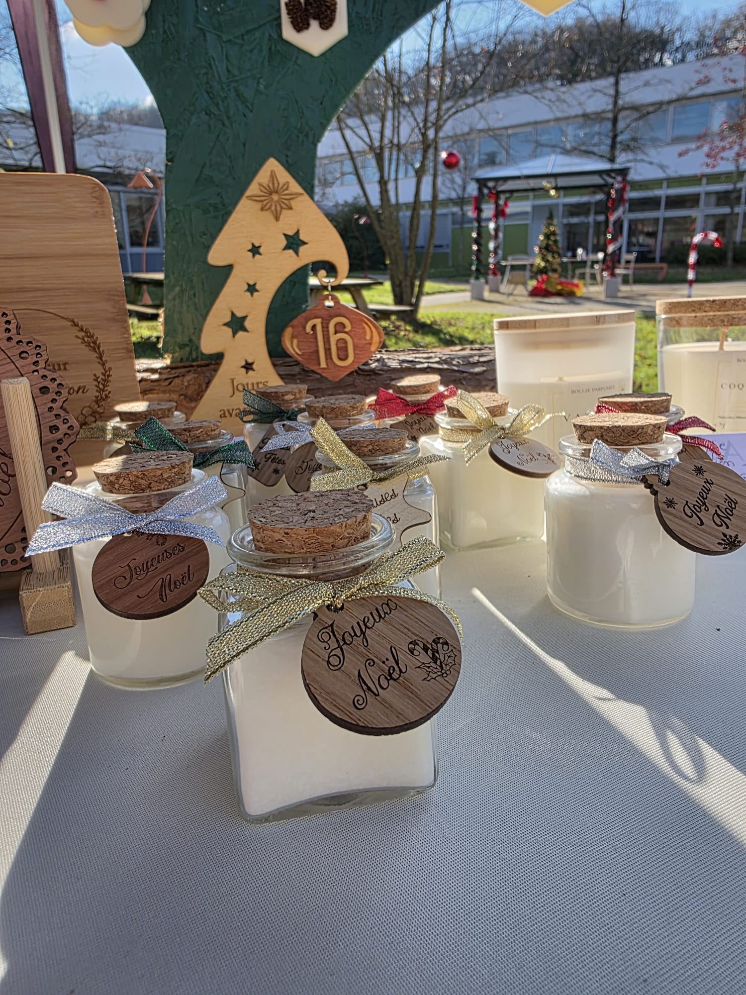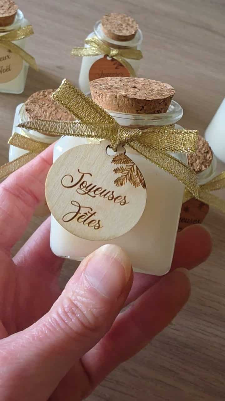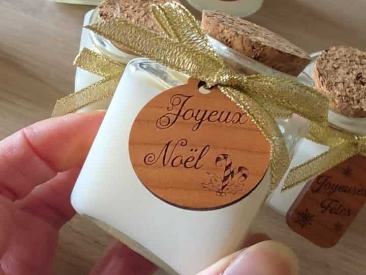 Chaque mini bougie est joliment décorée d’une étiquette en bois gravée « Joyeuses Fêtes » ou « Joyeux Noël » et sublimée d’un ruban festif, pour apporter une touche chaleureuse et élégante à vos cadeaux ou votre décoration de table.