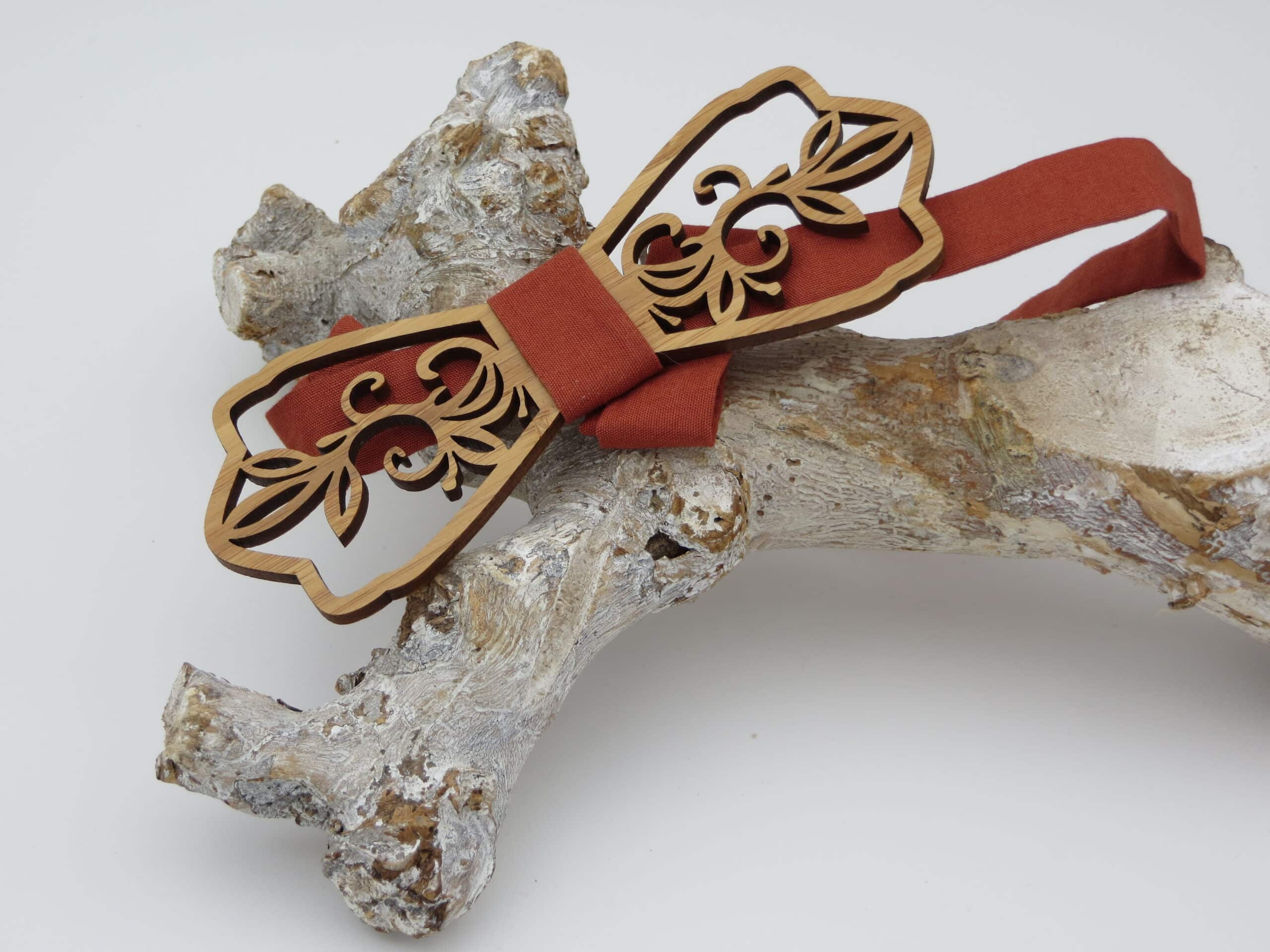 Alliant élégance, nature et originalité, ce nœud papillon en bois est décoré d’un motif finement travaillés mêlant arabesques et feuillages. Son design raffiné met en valeur la beauté naturelle du bois tout en apportant une touche poétique et sophistiquée à votre tenue.